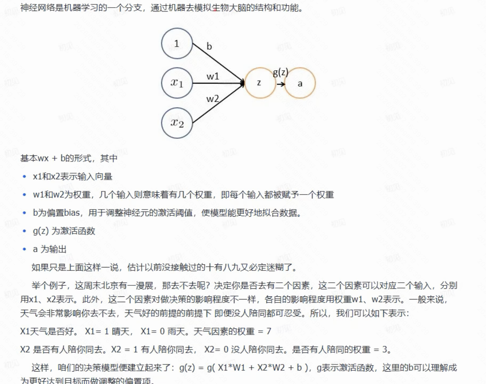 最简单的神经网络示意图如下,网络可以有多个标量输入,经过神经元处理后,得到一个输出