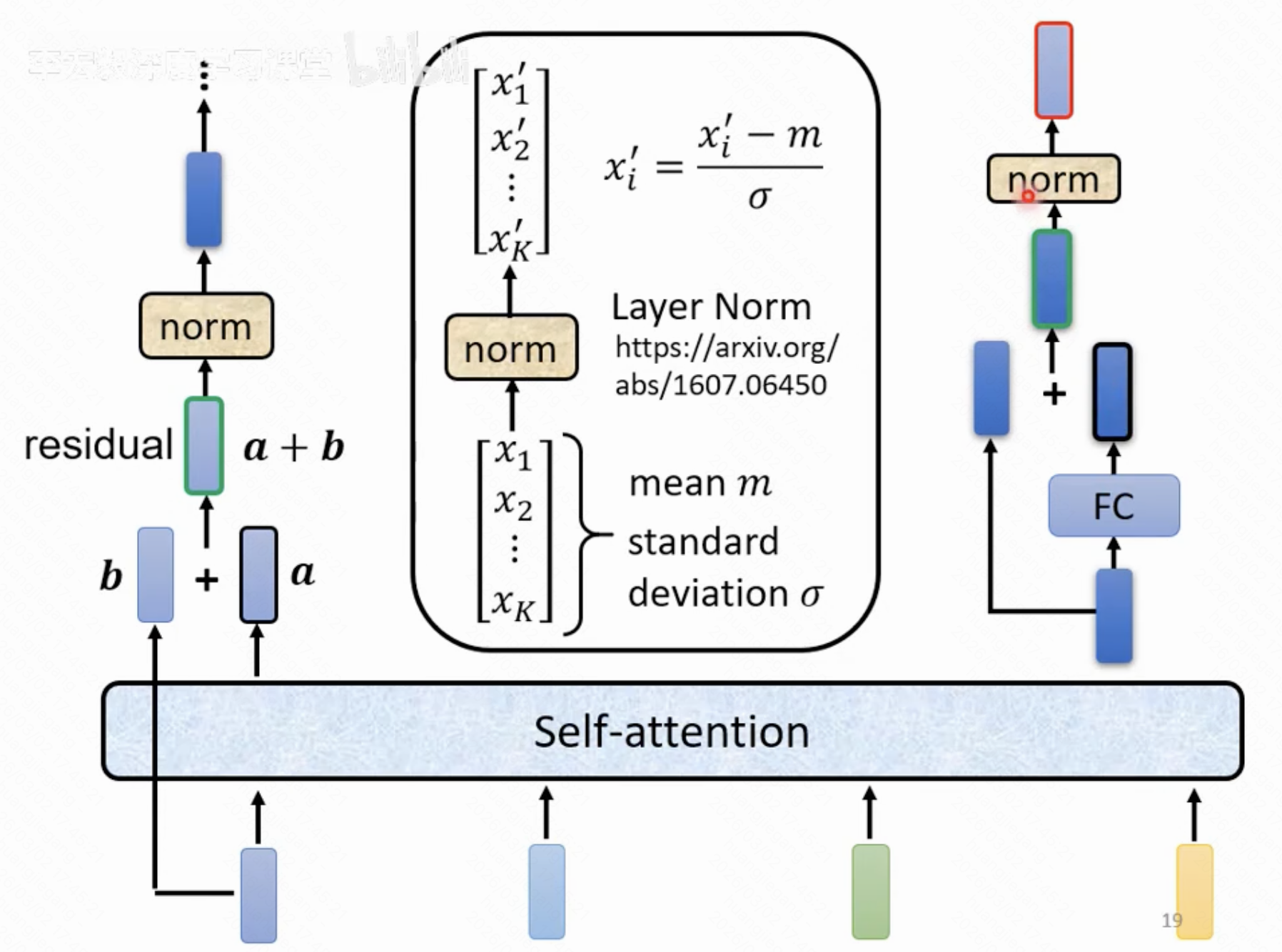 - 得到的结果和原输入结果做和处理,再整体做这一阶段的输出做归一化处理
