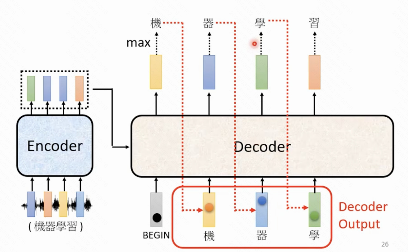 - 取概率最大的为该位置的输出结果