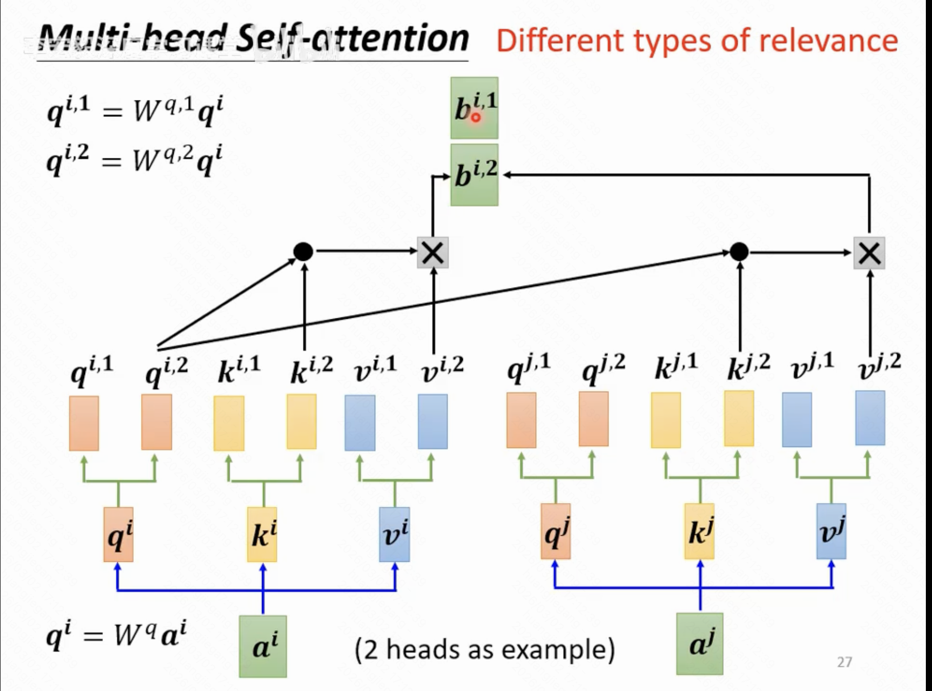 以下是衍生的概念: multi-head self-attention,只是引入了更多的待训练矩阵,增加输出结果的变数